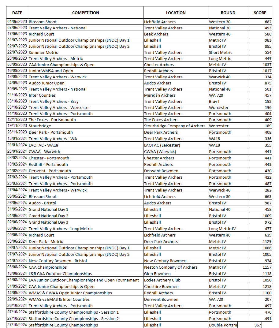 Competitions I absolutely love competing to better myself and meet new people. Here are the competition scores I have recorded.